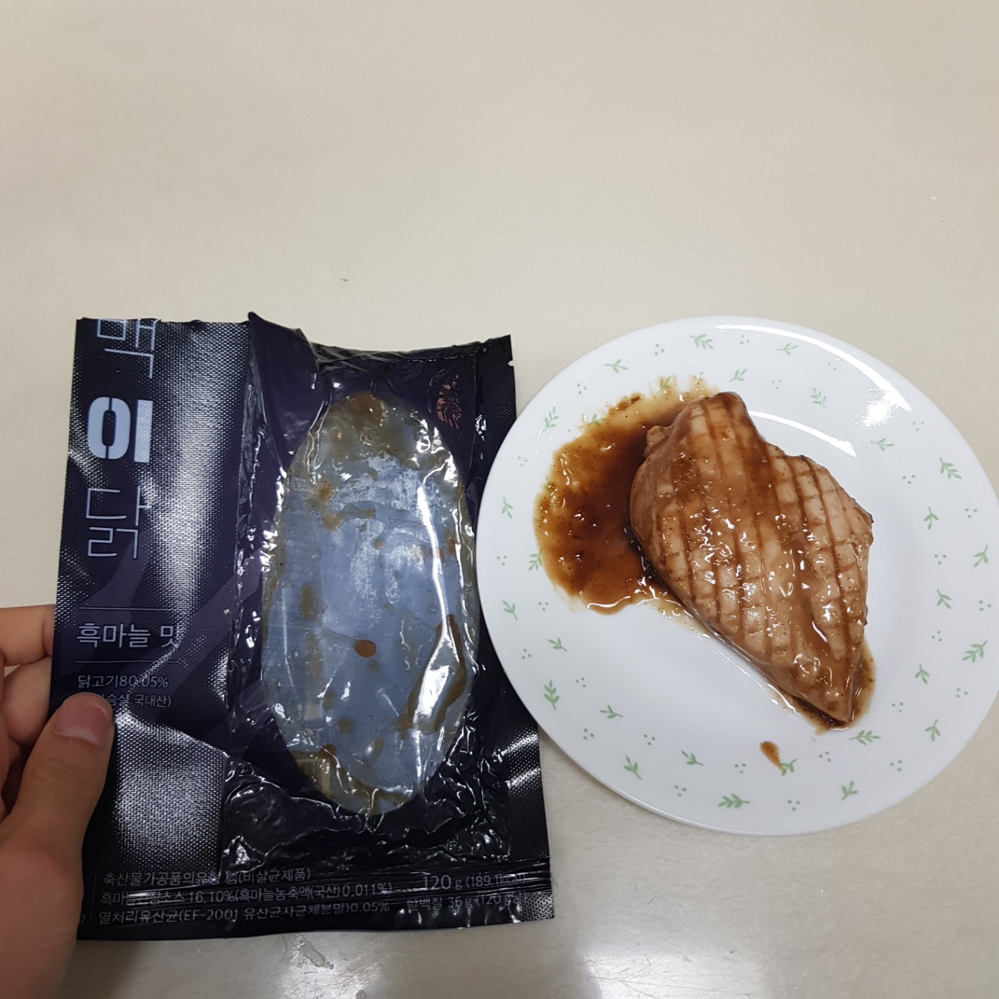 오늘 먹은 것을 모두 찍지는 못했지만 대략 이러합니다! 잠백이닭 닭 가슴살이 보통 120g에 단백질이 약 30~35g 정도 들어있어요. 또 프로틴 쉐이크 한 잔에 약 25g 정도의 단백질이 들어있었기 때문에 총 155g 정도의 단백질을 섭취했습니다. 섭취 시간은 약 2~3시간 간격으로 허기짐이 느껴질 때마다 먹어서 ㅎㅎ 하루 동안 맛이 없어서 그렇지 배가 엄청 고프고 그러진 않았어요! 나중에 닭 가슴살 리뷰도 할 테지만 잠백이닭 맛있습니다! 적당한 부드러움과 맛있는 소스의 조합 굿!! 단백질함량도 나이스~